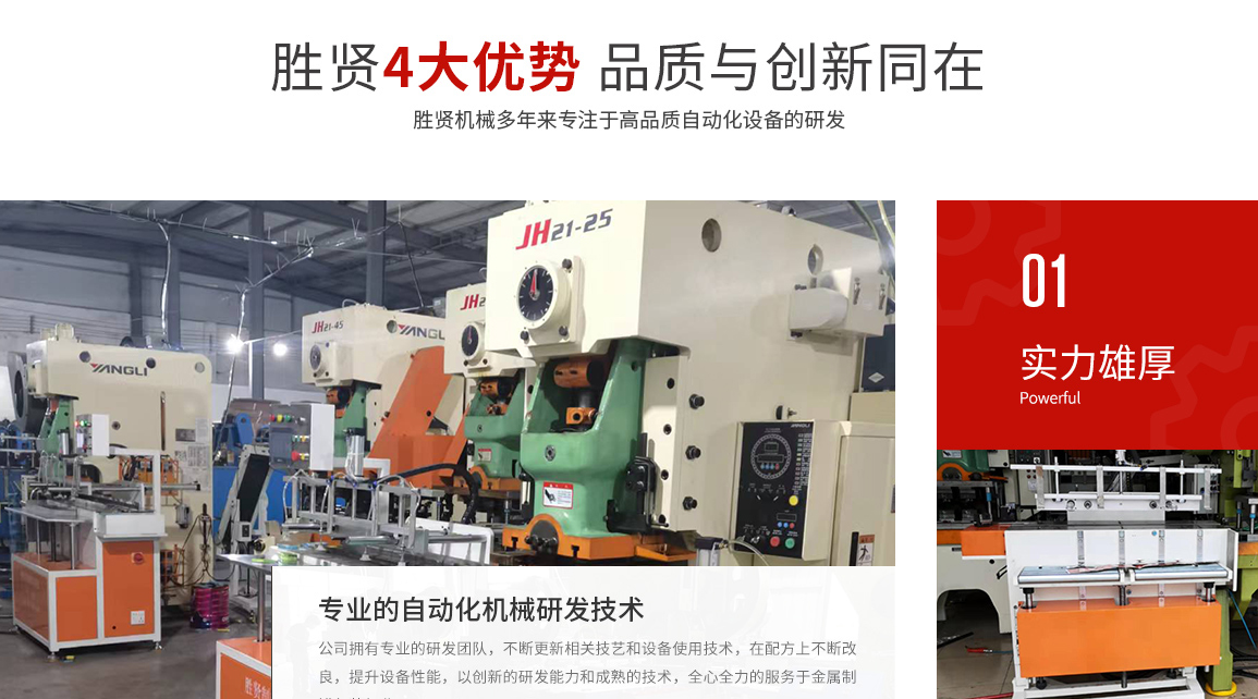 東莞市勝賢機(jī)械設(shè)備有限公司,是一家專業(yè)從事金屬制罐包裝行業(yè)的整套自動(dòng)化設(shè)備和模具開發(fā)、制造與銷售的公司,擁有成熟的技術(shù)和創(chuàng)新開發(fā)能力。我們擁有有一批多年從事設(shè)計(jì)、研究開發(fā)的工程師,和設(shè)備、模具制作的技術(shù)人才。不斷推進(jìn)制罐行業(yè)向高效、環(huán)保、節(jié)能、操作簡易化的方向發(fā)展。